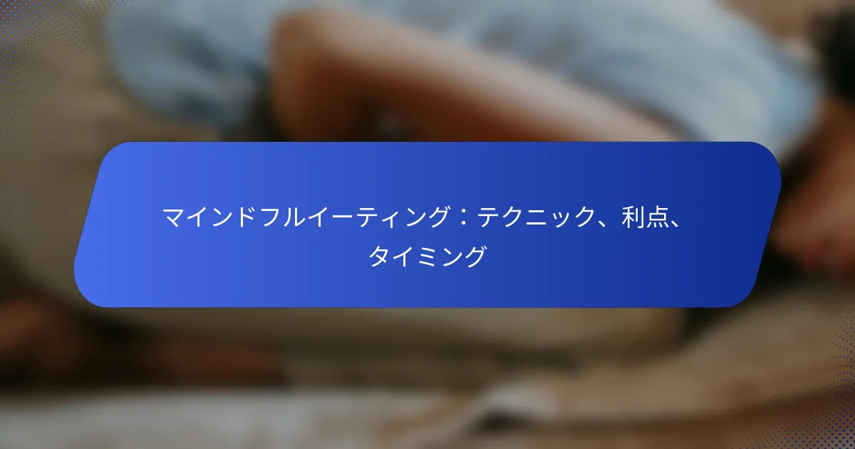 マインドフルイーティングは、食事中に完全に現在に意識を集中させ、食事の体験を向上させ、より健康的な習慣を促進する実践です。食事の感覚に焦点を当て、空腹のサインを理解することで、個人は食べ物との関係を改善し、食事をより楽しむことができます。このアプローチは、身体的健康に利益をもたらすだけでなく、感情的な幸福感もサポートし、食習慣を向上させたい人にとって貴重な実践となります。 マインドフルイーティングとは何か、そしてなぜ重要なのか? マインドフルイーティングは、食事中に完全に現在に意識を集中させ、気を散らすものではなく食事の体験に焦点を当てる実践です。このアプローチは、より健康的な食習慣を促進し、食べ物の楽しみを高め、食事とのより良い関係を育むために重要です。 マインドフルイーティングの定義 マインドフルイーティングは、味、食感、香りなど、食べ物の感覚的な体験に注意を払い、空腹や満腹のサインを認識することを含みます。これは、個人がゆっくりと食事を楽しみ、一口一口を味わうことを促進し、食事とのより深い結びつきを促します。この実践は、より意識的な食の選択や消化の改善につながる可能性があります。 マインドフルイーティングに取り組むことで、個人は過食や感情的な食事を減らすことができ、身体のニーズにより敏感になります。この意識は、より健康的な食の選択を助け、食事をより楽しむことができます。 歴史的背景と起源 マインドフルイーティングの概念は、仏教の伝統に起源を持つマインドフルネス瞑想に根ざしています。マインドフルネスの実践は、食事を含む生活のさまざまな側面での意識と存在感を育むために最初に開発されました。近年、これらの原則は現代の食事習慣に適応されています。 食事が健康に与える影響への意識が高まるにつれて、マインドフルイーティングは体重管理や全体的な幸福感を向上させるためのツールとして人気を集めています。さまざまなウェルネスプログラムや治療環境で受け入れられ、現代の健康に関する議論においてその関連性が強調されています。 マインドフルイーティングの主要な原則 スクリーンやマルチタスクなどの気を散らすものなしで、ゆっくりと食べる。 空腹と満腹のサインに注意を払い、ポーションサイズを調整する。 すべての感覚を使って、食べ物の風味や食感を楽しむ。 食べ物の起源やその準備にかかる努力を振り返る。 食べ物とその栄養に感謝の気持ちを持つ。 食事におけるマインドフルネスの重要性 食事におけるマインドフルネスは、食べ物との健康的な関係を育むために重要です。これは、個人が不健康な食習慣につながる感情的なトリガーに気づくのを助け、より意図的な選択を可能にします。この意識は、食べ物に関連するストレスや不安を大幅に減少させることができます。 さらに、マインドフルネスを実践することで、食事の楽しみが高まり、食べることがより楽しい体験になります。現在の瞬間に焦点を当てることで、個人は食べ物への感謝の気持ちを育むことができ、満足感が向上し、時間が経つにつれてより健康的な食習慣につながる可能性があります。 マインドフルイーティングに関する一般的な誤解 一般的な誤解の一つは、マインドフルイーティングが単なるダイエットや減量戦略であるということです。実際には、体重に焦点を当てるのではなく、食べ物との健康的な関係を育むことに関するものです。マインドフルイーティングは、個人が空腹や満腹を判断なしに尊重することを奨励します。 もう一つの誤解は、広範な時間や努力が必要であるということです。実際には、マインドフルイーティングは、食事の前に数回深呼吸をする、または食事中に気を散らすものを片付けるなどの簡単な調整を行うことで、日常生活に統合できます。これらの小さな変化は、圧倒的なコミットメントなしに重要な利益をもたらすことができます。 マインドフルイーティングを高めるためのテクニックは何か? マインドフルイーティングのテクニックは、食事中に現在に意識を集中させることに焦点を当てており、全体的な食事体験を改善し、より健康的な習慣を促進します。さまざまな戦略を取り入れることで、個人は空腹と満腹のサインをよりよく理解し、感覚を活用し、食事のためのサポート環境を作ることができます。 食事中にゆっくりするための戦略 食事中にゆっくりすることで、消化が良くなり、食べ物の楽しみが高まります。一つの効果的な戦略は、各食事のためにタイマーを設定し、食事を終えるのに少なくとも20分を目指すことです。これにより、一口一口を味わうことが奨励され、過食の可能性が減少します。 もう一つのテクニックは、一口ごとに器具を置くことです。この簡単な行動は自然な一時停止を生み出し、風味や食感を味わう時間を与えます。食べ物を飲み込む前にしっかりと噛むことも、ペースを遅